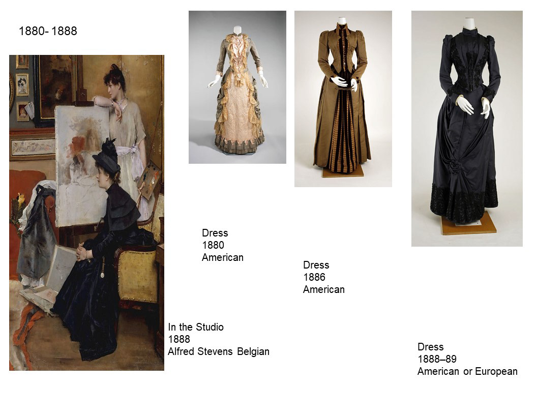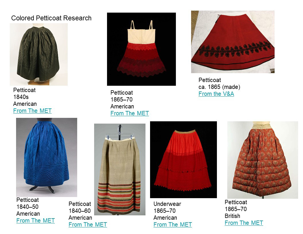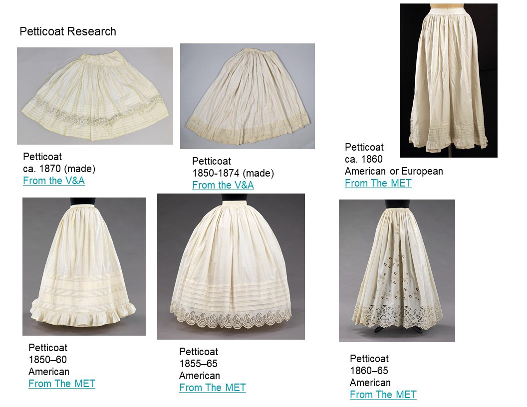 Above is the petticoat and corset cover layer also constructed by me. The petticoat was a self-drafted pattern, and the corset cover is based off of a Truly Victorian Pattern TV107.