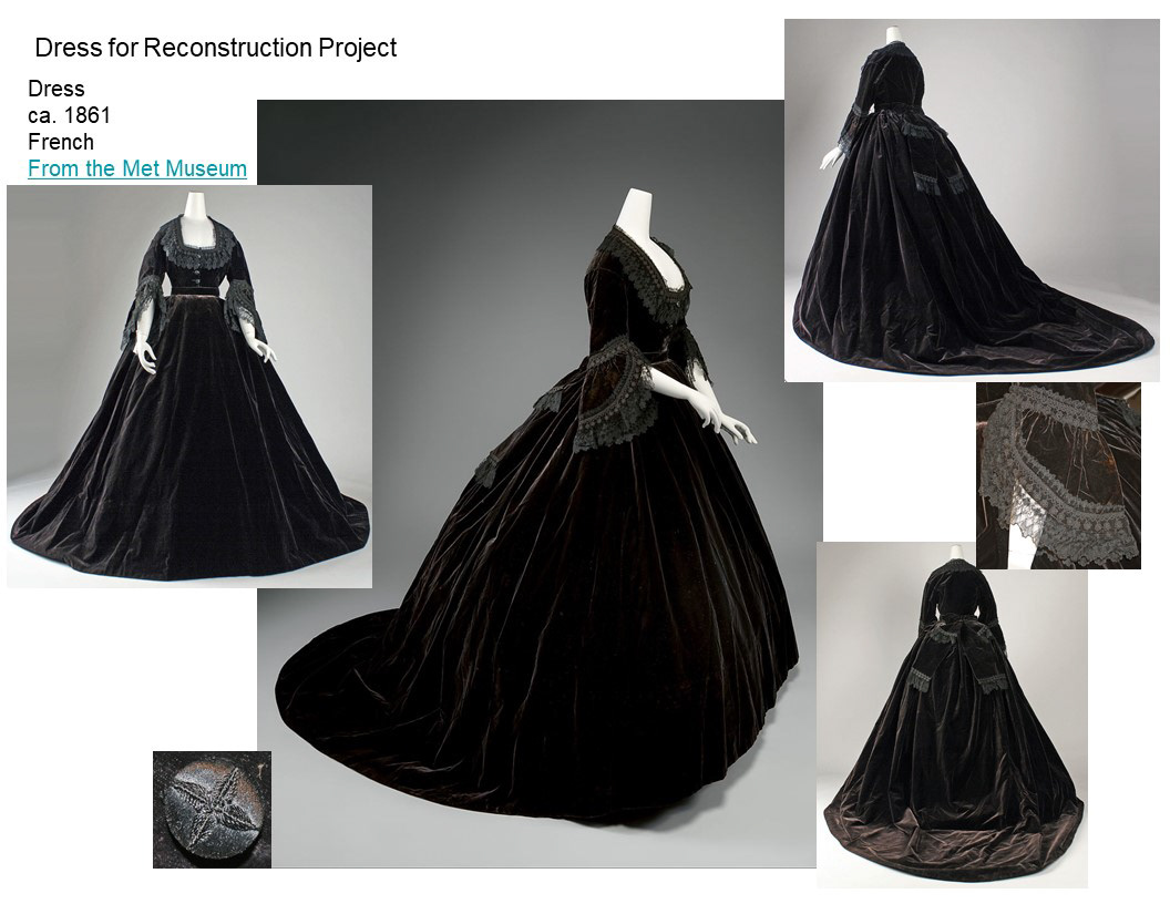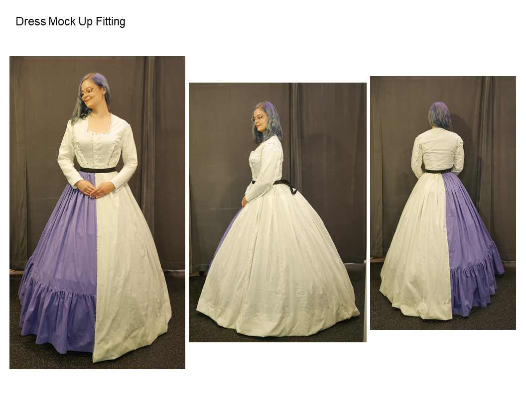 The box pleat ruffle was added by the recommendation of Jean Hunnisett's book Period Costume for Stage & Screen 1800-1909.